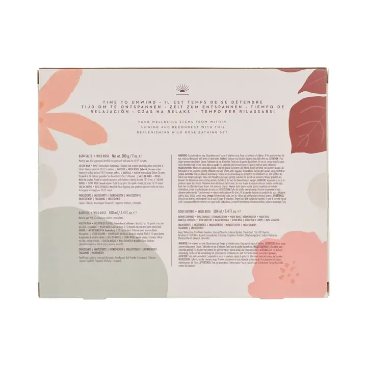 Relax and unwind with a long soak in the tub. This Bathing Rituals Three Piece Gift Set from the Wanderflower collection encourages moments of deep relaxation.